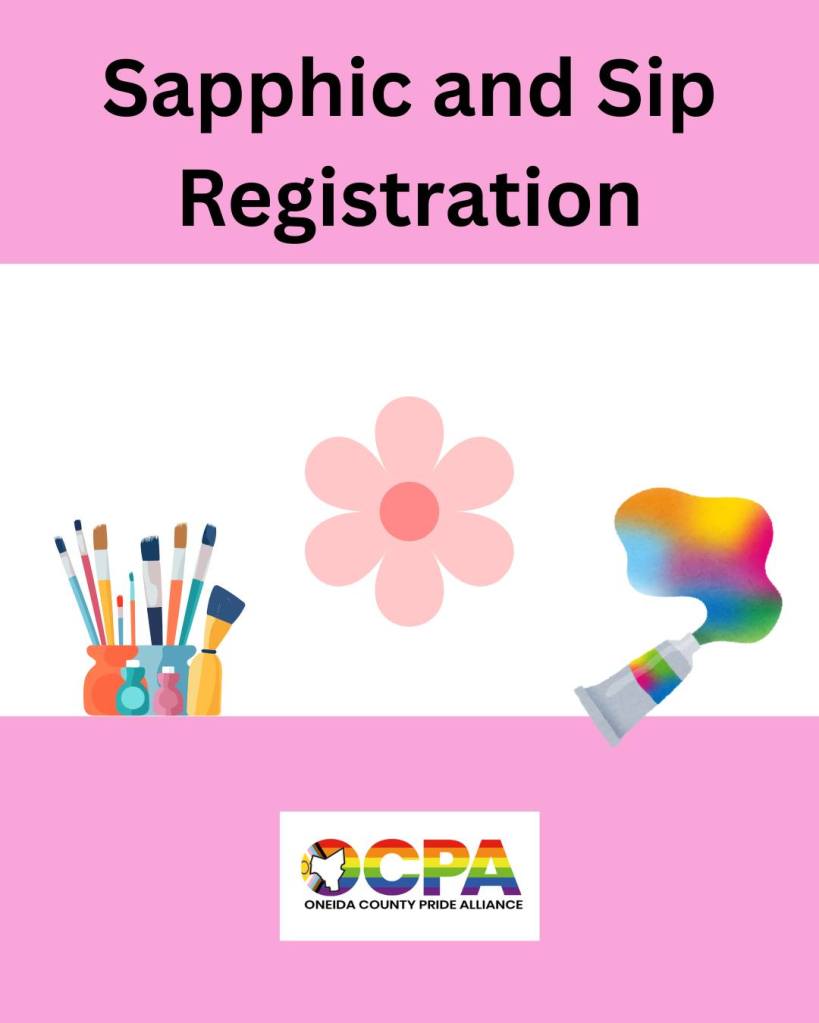 - Saturday 1/31, 2-4pm: “Sapphic and Sip” hosted by Oneida County Pride Alliance. Paint and hang out with OCPA friends!