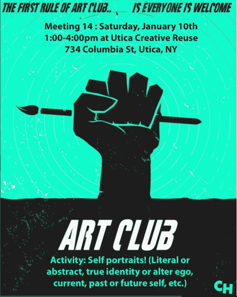 - Saturday 1/10, 1-4pm: Art Club Come create a self-portrait at Art Club! More info about Art Club at @artsclubutica