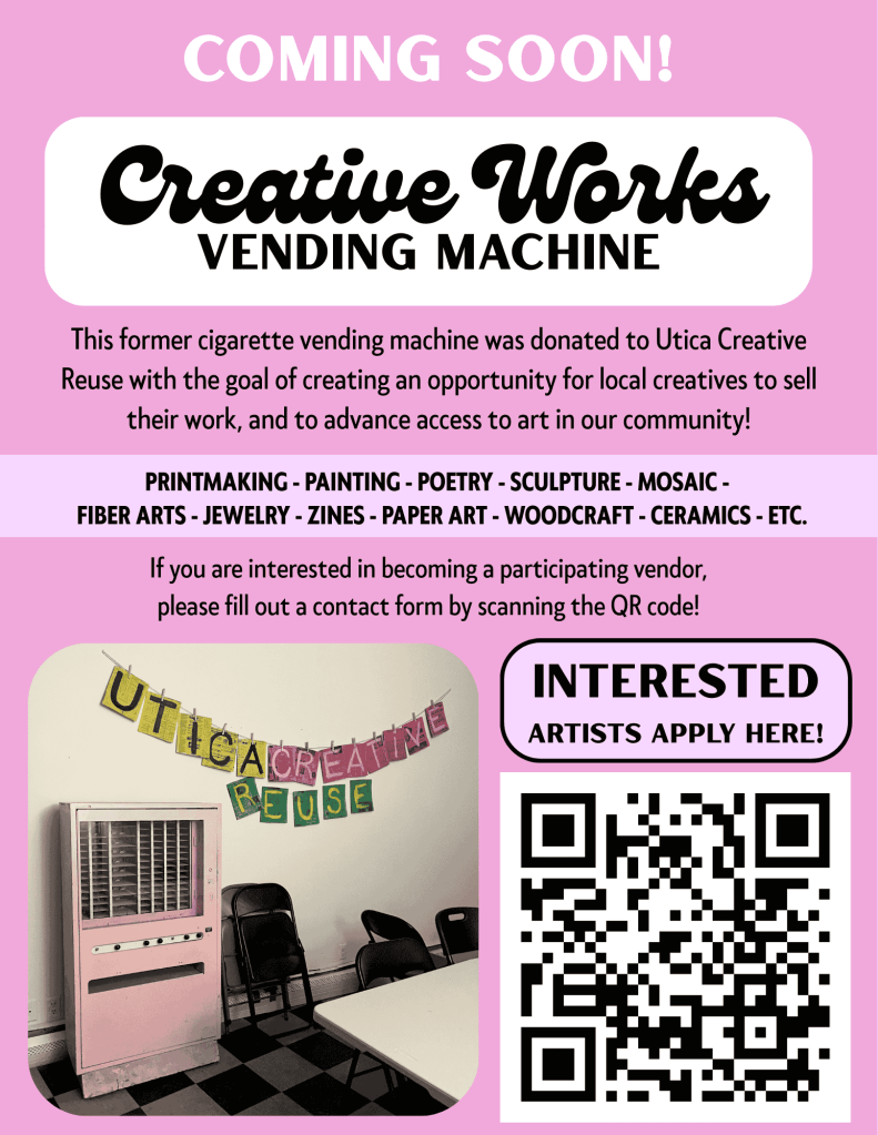 - Volunteer Opportunities: Check out current volunteer opportunities at uticacreativereuse.org/volunteer